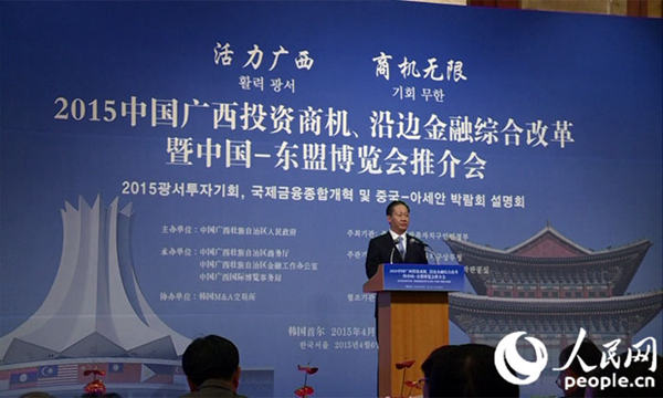 人民網首爾4月7日電(張悅 劉陽)4月6日下午,以“活力廣西 商機無限”為主題的“中國廣西投資商機、沿邊金融綜合改革暨中國-東盟博覽會推介會”在韓國首爾市成[詳情]