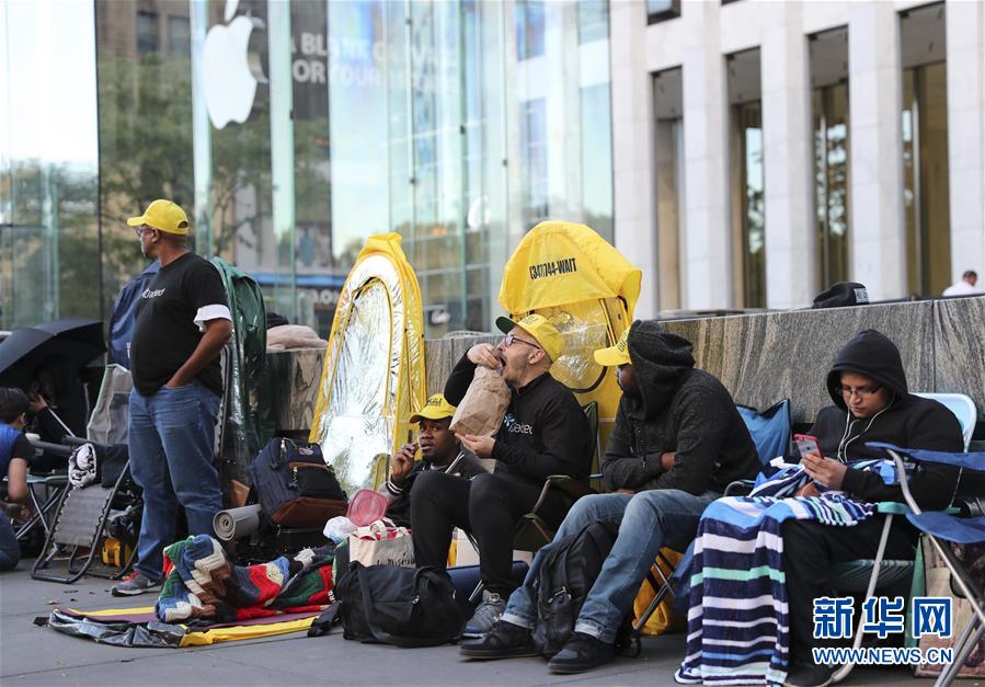 9月15日,在美國紐約,“果粉”杰米在第五大道的蘋果專賣店前排隊。據杰米介紹,盡管已在網上預購,但為了成為該門店第一個買到新手機的顧客,他22天前就開始在此[詳情]