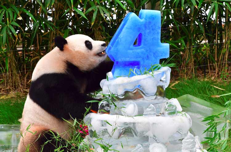 當地時間2016年7月10日,韓國龍仁市,生活在韓國龍仁市愛寶樂園的大熊貓“樂寶”和“愛寶”迎來生日,公園為其準備生日蛋糕和玩具。大熊貓“樂寶”。 [詳情]