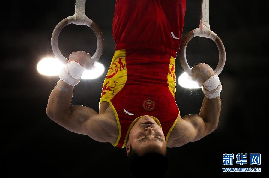 9月24日,中國選手廖俊林在奪冠后向觀眾示意。當日,在2014仁川亞運會體操項目中,中國選手廖俊林以15.566分的成績獲得吊環的冠軍。 新華社記者鄭煥松攝[詳情]
