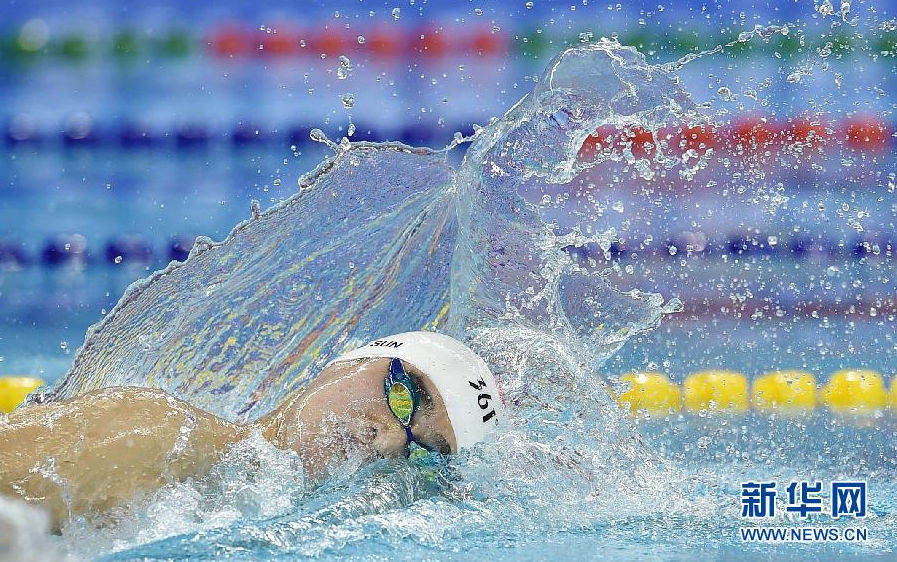 男子400米自由泳決賽,孫楊在比賽中。新華社記者朱崢攝