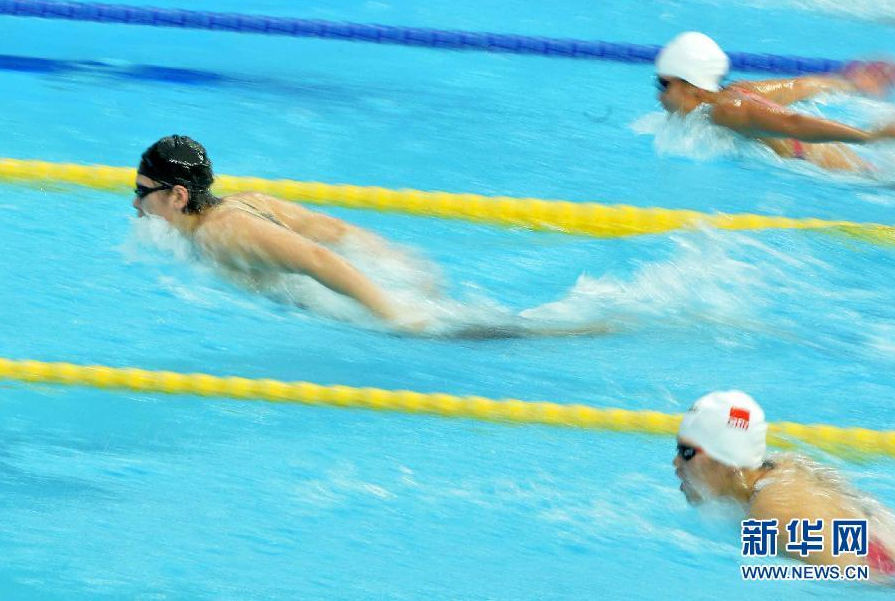 9月23日,中國選手葉詩文(左)在比賽中。當日,在2014亞運會游泳項目女子400米個人混合泳的預賽中,中國奧運冠軍葉詩文以4分38秒21的成績順利晉級。 新華[詳情]