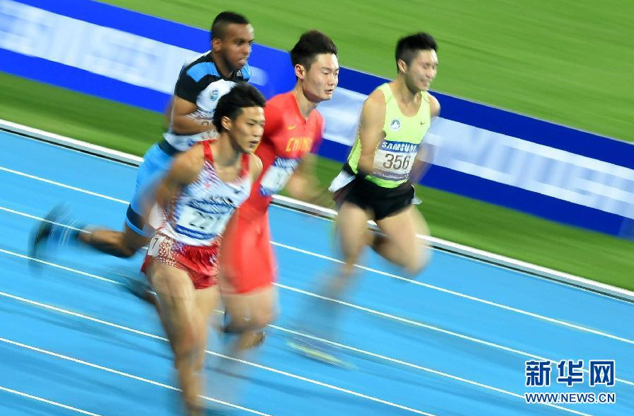 9月27日,中國選手張培萌(右二)在比賽中。當日,在2014仁川亞運會田徑男子100米預賽中,中國選手張培萌以10秒27的成績晉級。 新華社記者公磊攝[詳情]