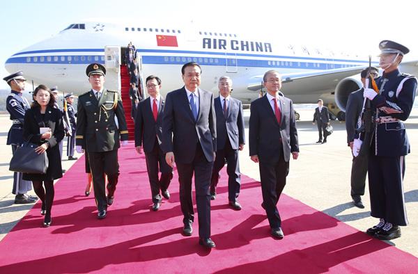 10月31日,應韓國總統樸槿惠邀請,中國國務院總理李克強乘專機抵達韓國首爾城南機場,開始對韓國進行正式訪問。 →→ 更多時政新聞[詳情]