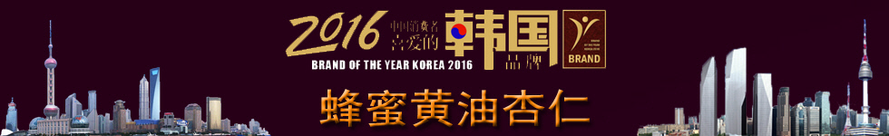 - 在今年舉辦的第14屆韓國品牌大獎評選中,蜂蜜黃油杏仁被中國消費者評選為韓國堅果類食品中最喜愛的韓國品牌。