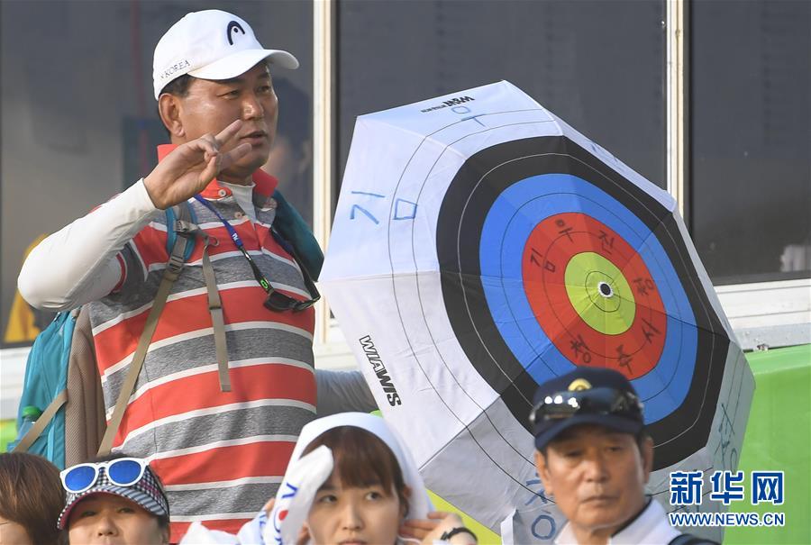 8月7日,一名韓國觀眾撐著一把箭靶圖案的傘為韓國隊助威。當日,在2016年里約奧運會射箭女子團體決賽中,一名韓國觀眾撐著一把箭靶圖案的傘為韓國隊助威,傘面上用韓文寫著“支持金優鎮”字樣。新華社記者王昊飛攝 相關新聞延伸閱讀: http://korea.people.c…