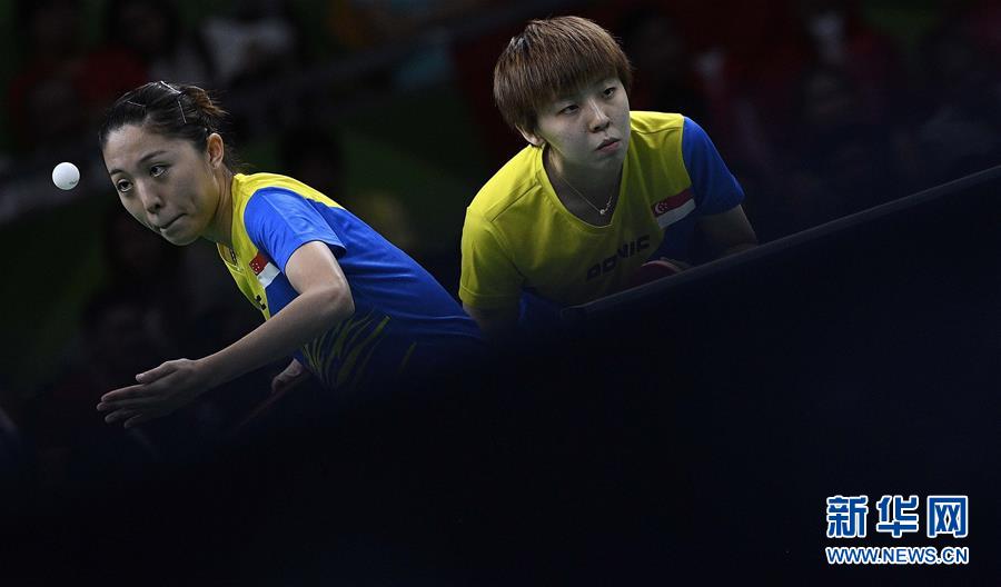8月13日,新加坡選手于夢雨(左)/周一涵在比賽中。當日,在2016年里約奧運會乒乓球女子團體四分之一決賽中,新加坡隊以3比2戰勝韓國隊,晉級四強 。 新華社記者王鵬攝 相關新聞延伸閱讀: http://www.linliquan.cn/205163/31292…