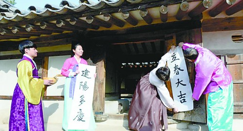 人民網2月2日訊 離二十四節氣中的立春(2月4日)還剩兩天。2日,首爾國立民俗博物館工作人員在韓國傳統建筑梧村宅大門上貼出立春對聯。對聯上寫有“建陽多慶”“立春[詳情]
