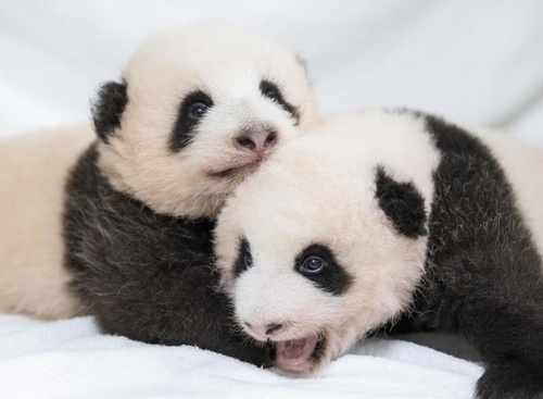 在韓大熊貓雙胞胎滿月照(韓國愛寶樂園)