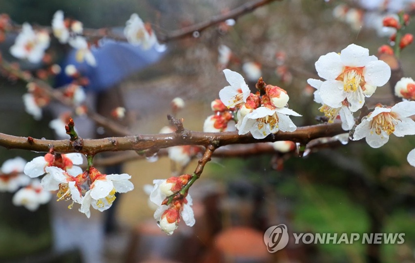春雨潤物!濟州梅花競相綻放【組圖】 人民網訊 據韓聯社報道,近日,位于韓國最南端的濟州島迎來春雨,自然生活公園的梅花綿綿細雨中競相綻放,別有一番意趣。