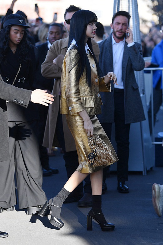 Lisa金色套裙出席時裝大秀 黑長直金衣造型上演絕美回眸殺【組圖】 人民網訊 20日,Blackpink成員Lisa身著金色皮革套裝,受邀出席在意大利米蘭舉行的2020秋冬米蘭時裝大秀。 當日,Lisa身穿Prada 2020春夏系列金色套裝裙,黑長直齊劉海發型搭配恨天高黑皮鞋亮相,金光閃閃,視覺沖擊力很強,上演絕美回眸殺!
