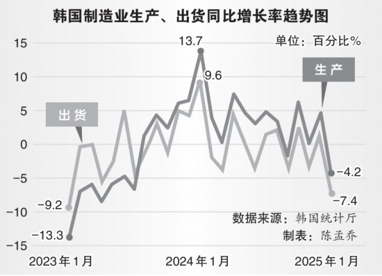 韓國經濟面臨“三重打擊” 支柱產業承壓、貿易壁壘加劇 人民網首爾3月13日電(李帆)韓國統計廳近日發布的最新數據顯示,2025年1月,韓國生產、消費和投資三大經濟指標全面下滑。這是繼2024年11月后,時隔兩個月再次出現經濟“三連降”現象?!?/a>