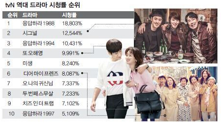 刷劇指南!《鬼怪》《信號》《請回答1988》 tvN高分韓劇你都看過嗎?【組圖】 tvN電視劇收視率排行