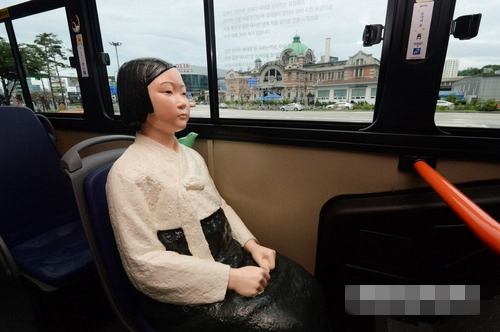 據韓國紐西斯通訊社報道,首爾市5輛115路公交車內設立了“慰安婦”少女像,這些公交車將在8月14日到9月30日期間運行!