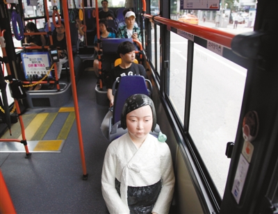 通訊:韓國公交車上的“慰安婦”少女像 一位身著傳統韓服的“少女”,沉靜優雅地“坐”在公交車上靠窗的位置,若有所思。在她的肩上,一只象征和平的青鳥翩然欲飛…… 8月14日是世界“慰安婦”紀念日!