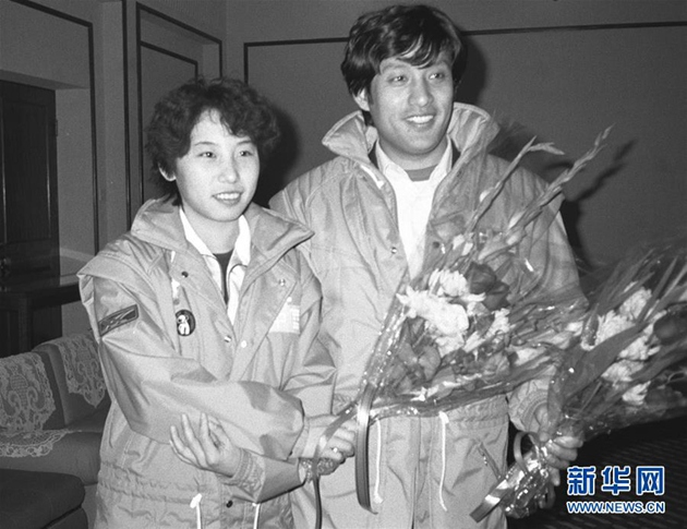 冰雪運動百科 短道速滑:穿冰鞋在111.12米長的橢圓形賽道上繞圈賽跑的比賽 圖為1988年3月3日,中國選手李琰(左)和教練辛慶山合影。1988年第十五屆冬奧會在加拿大卡爾加里舉行,15名中國選手前往參賽!