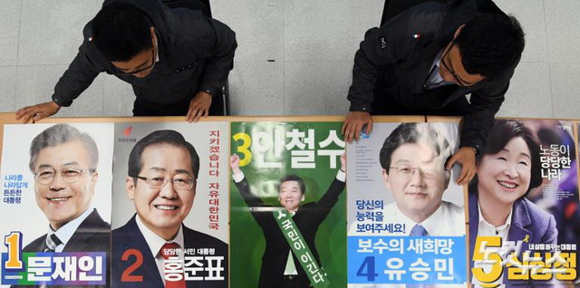 韓國大選拉票大幕將啟 5名主要候選人各顯神通 據韓聯社報道,第19屆韓國總統選舉的拉票活動將于17日啟幕,在未來22天里,各候選人將進行一場沒有硝煙的戰爭。 最近一次大選民調結果顯示,共同民主黨文在寅和國民之黨安哲秀的支持率差距縮小至誤差范圍,這讓僅剩三周的大選變得更加撲朔離迷!