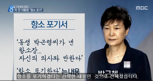 樸槿惠放棄上訴書內容曝光 用A4紙親筆寫了4行 16日,樸槿惠向首爾中央地方法院提交了放棄上訴書,具體內容被韓媒曝光。 據韓國《東亞日報》報道,樸槿惠用A4紙張親自書寫了放棄上訴書,一共4行,內容是:被告人放棄上訴,同時明確指出,被告人的妹妹樸槿令此前遞交的上訴書與本人意思不符!