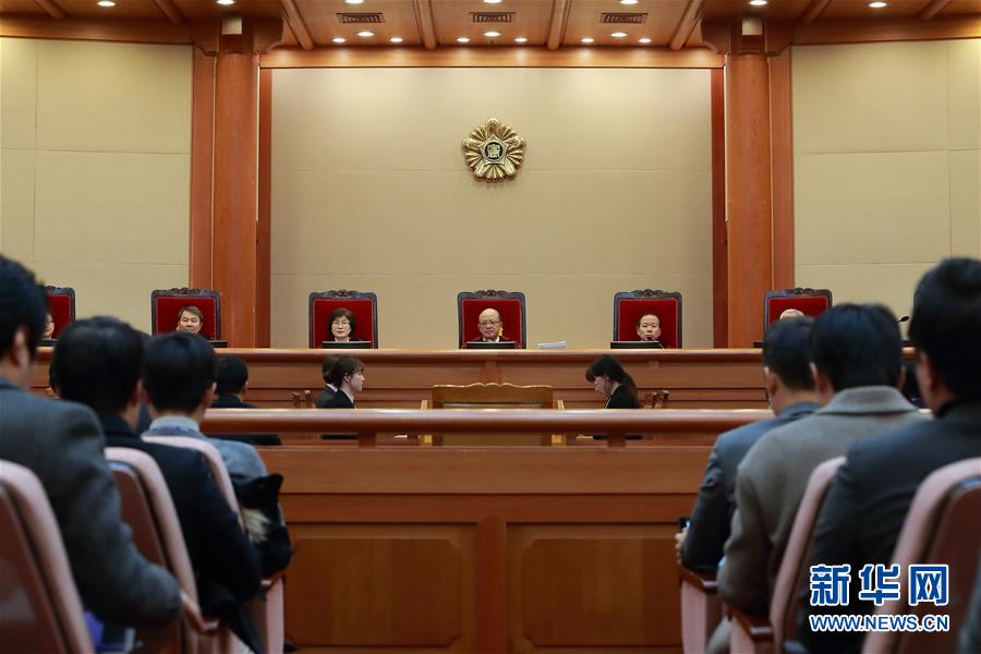 韓國啟動總統彈劾案審理程序 韓國憲法法院1月3日下午舉行總統彈劾案首次庭審辯論,正式啟動彈劾案審理程序,總統樸槿惠缺席庭審。 當天的庭審辯論在憲法法院大審判庭舉行,憲法法院9名大法官全部出席庭審!