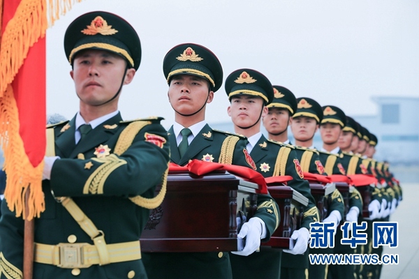 第五批在韓中國人民志愿軍烈士遺骸回國 3月28日,在韓國仁川國際機場,中方禮兵護送志愿軍烈士遺骸上飛機。根據中韓雙方達成的共識,當地時間28日10時,中韓雙方在韓國仁川國際機場莊嚴舉行第五批在韓中國人民志愿軍烈士遺骸交接儀式!