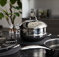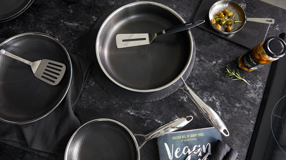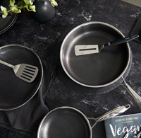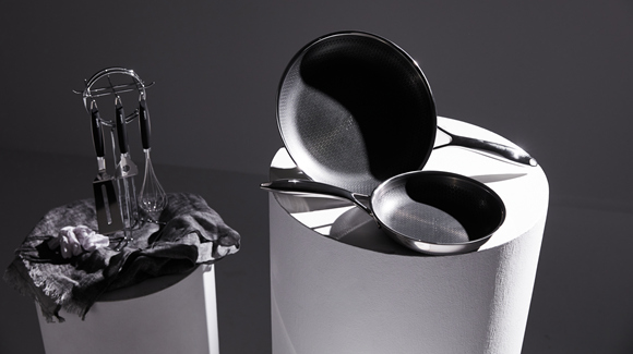 Cookcell的平底鍋產品采用BLACKCUBE公司的獨家專利技術,鍋體為三層不銹鋼復合結構,鍋面采用六邊形圓點壓花技術,六邊形凹槽填充涂層。這種結構使食物與涂層表面的接觸面積最小化,從而降低食物燒焦的概率,同時改善涂層脫落現象,更易清洗,使產品具有較長的使用壽命。涂層采用美國FDA規格的材料,保障使用安全。目前Cookcell產品已更新至第七代,涂層耐用度和防粘鍋能力更強。人 民 網 版 權 所 有 ,未 經 書 面 授 權 禁 止 使 用