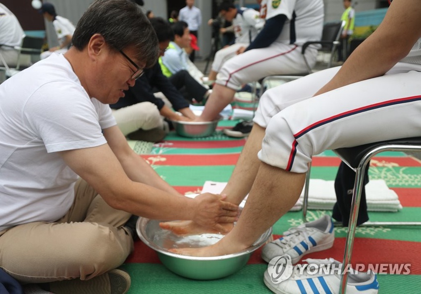 【韓國教師節】教師為學生洗腳表達關愛 人民網訊 據韓聯社報道,5月15日是韓國教師節,首爾市江西區圣地高中14日舉行第17屆“洗足儀式”,學校老師集體為學生洗腳表達關愛。通過此類活動,校方希望老師時時銘記教師的職責,同時讓學生記住老師的恩情,以促進師生關系!