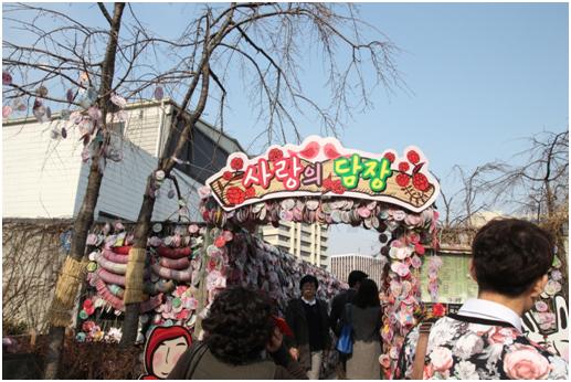 一直沿著樓梯走到頂層的話可以看到天空公園。如果說南山有愛情之鎖的話,Samziegil街則擁有愛情之墻。和朋友、戀人一起在這里留下美好的記憶吧!
