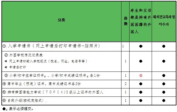 中國特長生入學需要具有韓國語能力考試3級證書。(父母雙方均為外國人的外國學生)