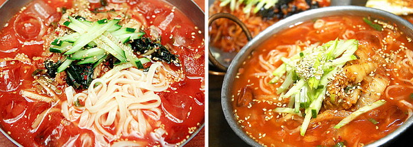 在泡菜湯上加入肉湯制作而成的泡菜面條也是夏季的一道美味。將泡菜湯與肉湯充分融合的面條,和帶有泡菜味道的湯都是極品。在泡菜湯里放入米飯的泡菜飯,又是一頓極佳的美餐。
