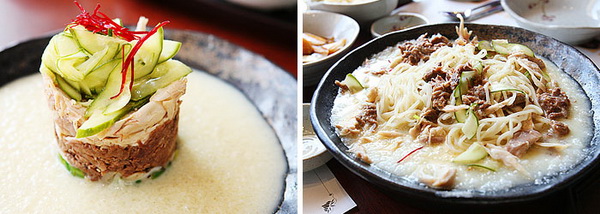 醋雞湯是北韓咸鏡道和平安道地區的冬季美食,近來成為夏季常吃的補養食品。醋雞面是將雞肉里的油去掉,放入新鮮的蔬菜和韓藥材等制作而成的,味道清淡而香氣獨特,而且還是低卡路里飲食,有利于減肥。