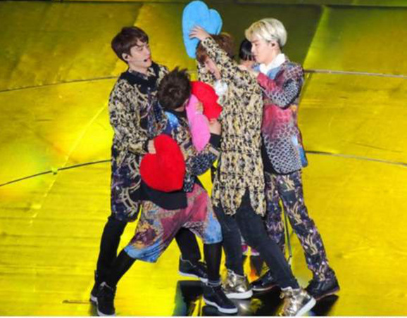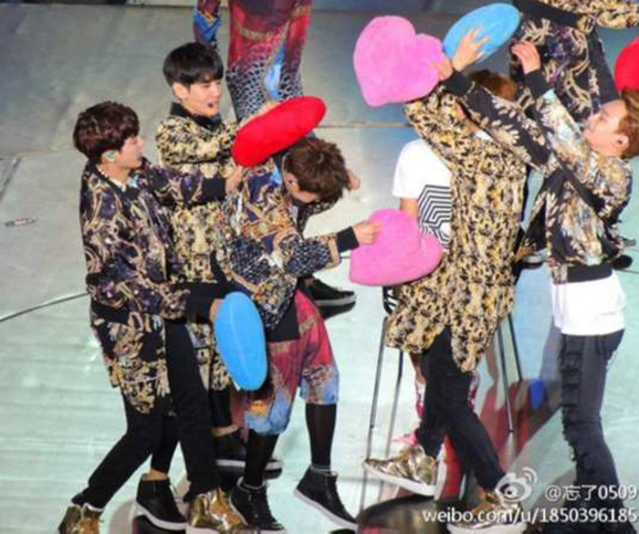 原標題:韓國EXO上海演唱會NP:鹿晗秀肌肉臺上遭調戲 伯賢騎壓燦烈終于大翻身