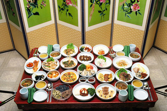 韓國的宮廷美食統稱韓定食,做工十分講究,這一點看過韓劇《大長今》的觀眾都會了解一二。從基本配備的小菜、南瓜粥,到色澤亮眼的九折板、令人回味的蒸牛排骨、再到海鮮沙拉及米果等餐后甜點。