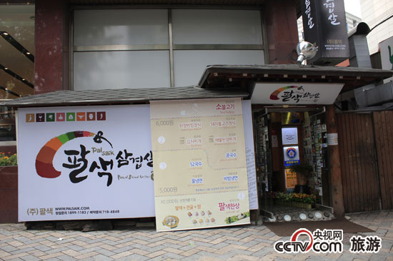 乘坐地鐵2號線到達新村站,八色五花肉就坐落在車站與西江大學之間的路邊。由于店面寬敞,經常被用于拍攝電視劇和舉行慶功宴。事實上,該店的董事長也是演藝人出身。深入地下室樓梯邊的墻壁上掛滿了名人的照片和簽名。另外,中國的美食節目、雜志、旅游手冊上也經常會出現與此店相關的報道。