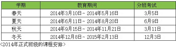 ※韓國語學堂根據學生的韓語水平開設班級,共有5個班,1年教學時長有4個學期。為了更多地理解韓國文化,學校還組織了很多訪問民俗村,體驗山林寺廟等的文化體驗及現場學習活動。