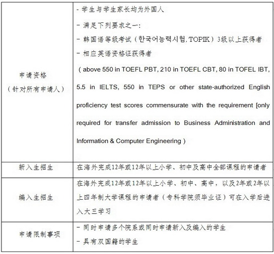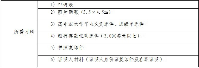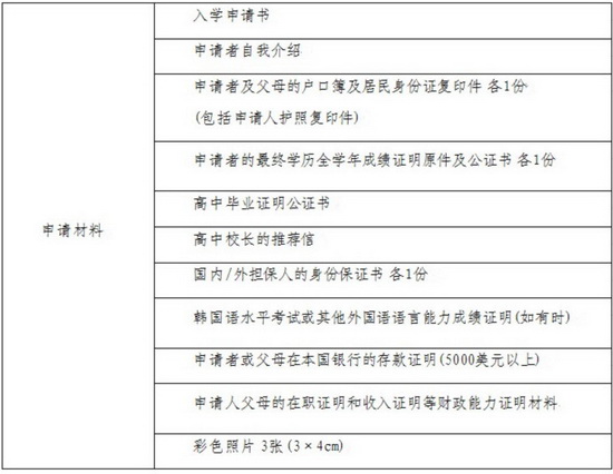 提交所需材料→入學通知→繳納學費→發給入學通知書→向韓國使館申請D-4簽證→(中國學生)寄送簽發簽證所需材料→離行前準備→到達、參加分班測試