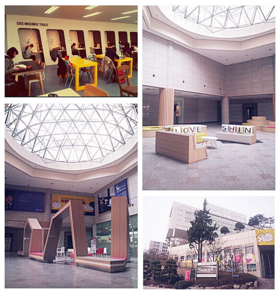(從左到右從上到下依次為:學校圖書館、學校內部設施、校園一角)