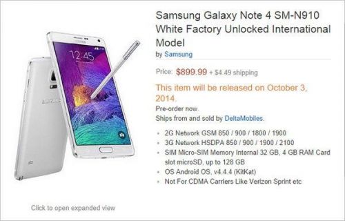 除此之外,歐洲市場智能手機價格昂貴的特色,在此次三星GALAXY Note 4的預訂中也得到了體現,同樣是亞馬遜的預訂價格,在美國市場給出的售價則為899.99美元,約合人民幣5510元左右。
