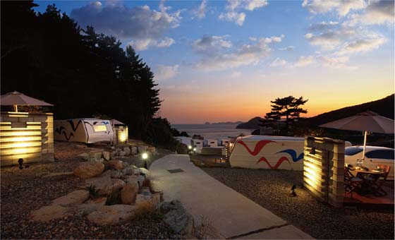 如果想要體驗異國風情,以熱帶幻想為主題的“Tropical Dream”就很適合。以建筑家閔奎巖設計而聞名的“Tropical Dream度假村”親自制作和運營豪華露營版的SPA野營車。在奢侈野營車內部準備的賓館水平的室內SPA就是重心。在浪漫的燈光下將身體泡在水里,看著窗外的異國風情的巨濟島風景,這就是完美的Tropical Dream! 野營車之間會保持一定距離,還有墻隔著,可以保障私人空間。