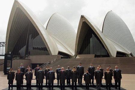 2007年悉尼APEC峰會的各領袖會穿什么“民族服裝”,主辦方一直保持高度神秘。直到各領袖在世界媒體前亮相之時才揭曉:原來澳洲選擇了深褐色的皮夾克,樣子很容易使人聯想到厚重的雨衣。