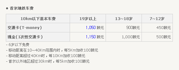 ★ 首爾地鐵票價