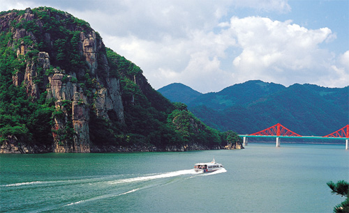 玉筍峰屬于月岳山國立公園,石壁海拔為286米。乘坐清風湖游船或登上加隱山,遙望玉筍峰,神奇般蜿蜒著的玉筍峰與清風湖相映成趣,令人贊嘆,美麗至極。傳說退溪李滉稱石壁好像竹子的筍冒出來一樣,于是把這里命名為玉筍峰。得益于2001年玉筍大橋的完工,現在游客可以在更近距離的地方觀賞到清風湖和玉筍峰的美麗景觀。