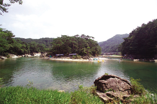 據傳說,“濯斯亭”得名于中國屈原所作的《漁父辭》中“滄浪之水清兮,可以濯我纓,滄浪之水濁兮,可以濯我足”。如果因世間瑣事感到身心疲憊時來到濯斯亭,看著雄壯延伸著的山脈和腳下流動著的清澈江水,有種心靈“洗盡鉛華”的感覺,是和家人一起嬉水或集體野營的最佳之地,因而夏天有很多避暑游客蜂擁而至。溪谷下面有一個小小的沙灘,高大的松樹制造了涼爽的陰涼地,還可以體驗到在江內巖石的石縫中空手抓田螺的樂趣。