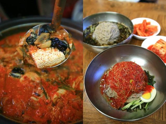 五色溫泉附近餐飲住宿設施一應俱全,鰭魚湯是當地特色美食,選用上好的泡菜,加入鯽魚、鯽魚籽、辣椒粉、細蔥等,大火燒開后轉小火慢慢熬制,湯味道鮮美,魚肉入口即化,再配上一碗蕎麥面,身心都得到極大的滿足。