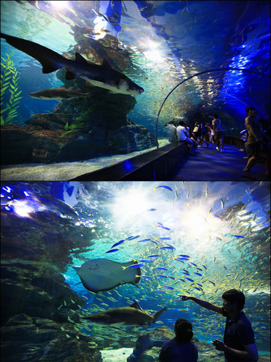 運用最尖端技術建成的主題水族館 ——釜山海底世界,海云臺沙灘側的釜山水族館,是一個建于地底的水族館,樓高3層,樓面面積逾5萬平方米(以韓國測量方式為準),是韓國單一建筑規模最大的水族館,鯊魚館內的透明隧道,亦是韓國最長的一條。