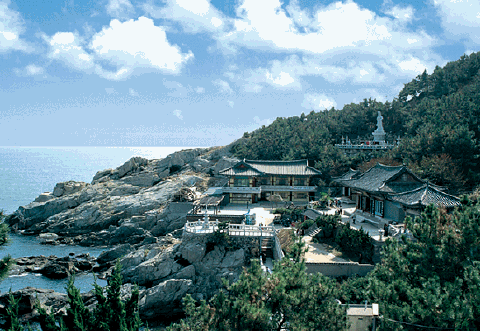 龍宮寺最特別的景致當屬108階和日出巖。從龍宮寺入口必須下108階才能來到寺廟,而日出巖就位于108階中間。站在巖石上可以聆聽到海浪拍打巖壁的聲音,欣賞日出的壯觀美景。每當新年,不少人都來到這里面對日出許下心愿。而農歷4月時,龍宮寺入口櫻花繁盛。