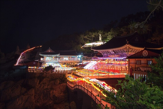 到了釋迦摩尼誕辰, 寺廟被電燈裝扮起來,呈現出幻想般美麗的夜景。