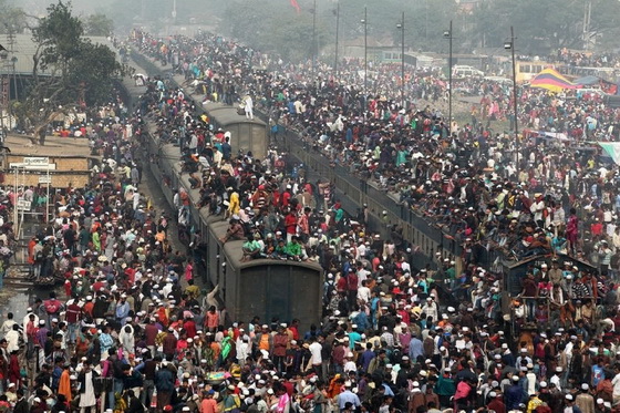 這一年度集會給孟加拉國的交通帶來了巨大的壓力,穆斯林返鄉的火車嚴重超載,讓人不禁為他們的安全問題捏把汗,乘客站在火車頂上,如同玩雜技一般。