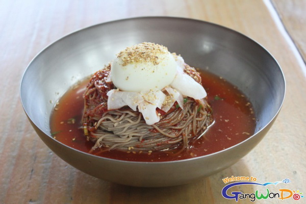使用純蕎麥面粉制作面條,在面條中放入辣白菜湯或蘿卜泡菜湯后直接食用?;蛟诿鏃l里加入調味料、食醋、芥末及肉湯,攪拌后食用,味道更為鮮美。