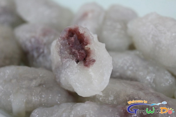 用土豆淀粉和面,加入紅豆餡或菜豆餡后捏成松餅,蒸熟即可食用。用量實誠,可以很容易填飽肚子。