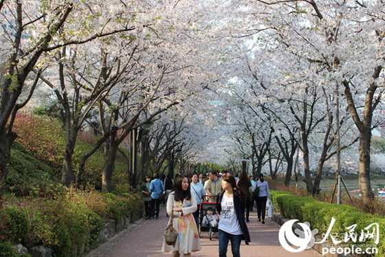 首爾蠶室石村湖畔每年的四月都會舉辦櫻花節。這里是首爾市中心唯一的一個湖水公園。